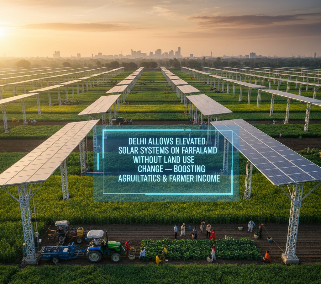 The government of Delhi has also allowed installation of the elevated solar power systems on agricultural lands without any formal land use change, which is a major policy change with an intention to increase the clean energy implementation. The relocation allows the farmers and developers to install the solar panels on raised platforms, after which crops can be grown under them. The elimination of the requirement of land-use conversion will help authorities to reduce delays, cut compliance, and open up idle potential on peri-urban and rural land.